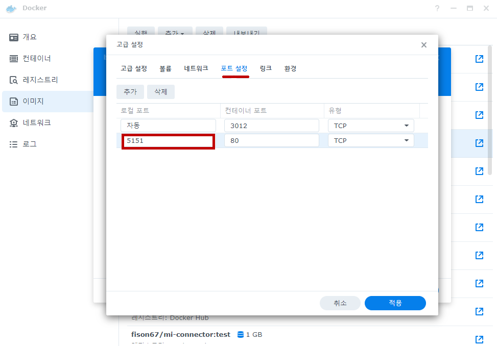 네트워크 탭은 그대로 스킵하고, 포트 설정 탭의 두번째 로컬 포트를 "5151"로 변경