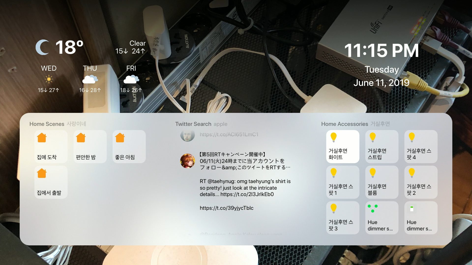 그러면 홈킷에 등록된 모든 장치들을 스마트기기의 어플과 동일하게 애플TV에서도 조작이 가능하다.