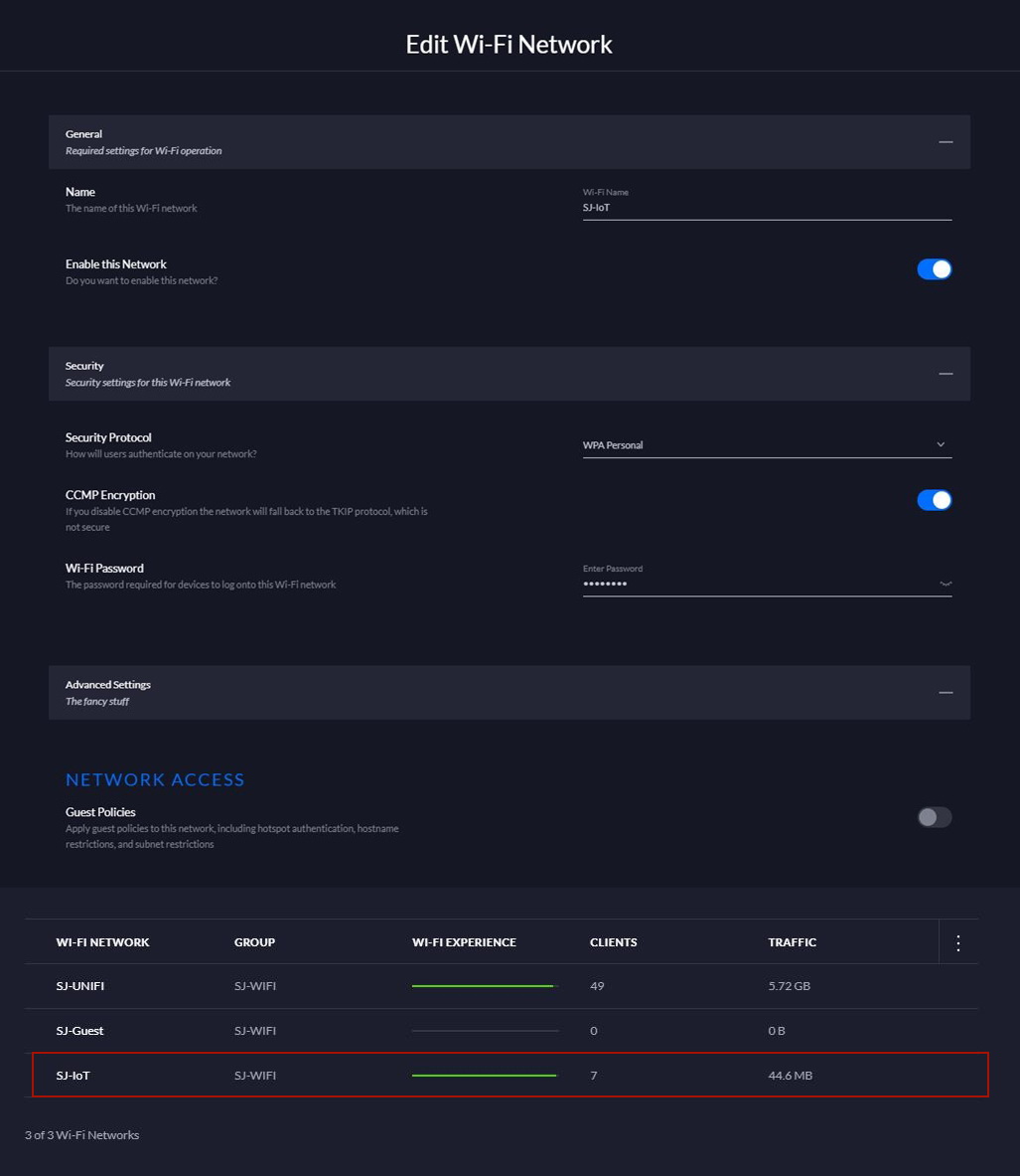 'SJ-IoT'라는 스마트홈 장비 전용의 무선랜도 하나 생성하여 VLAN에 연결하여 주었다.