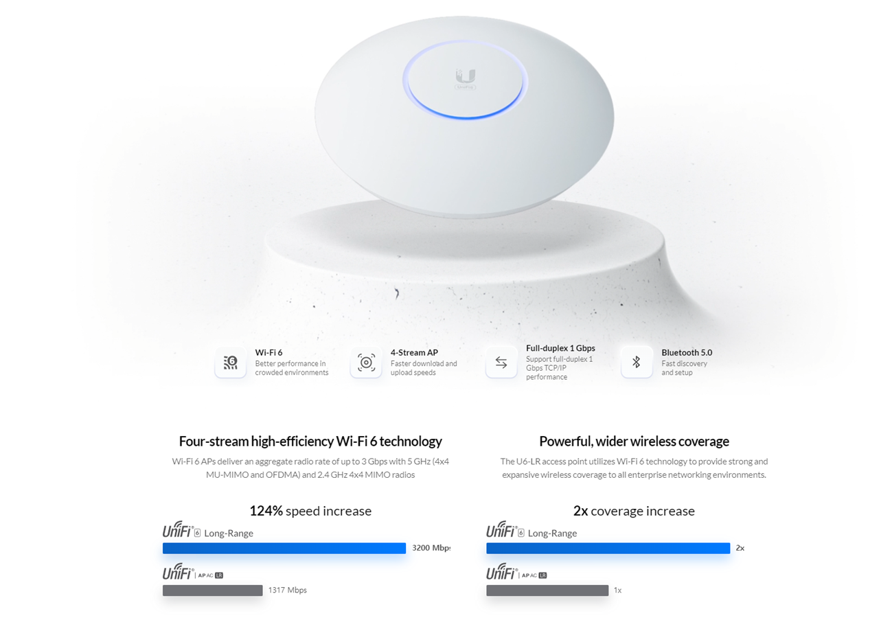 사실은 U6-LR이 기존 AC-LR에 비하여 무선 속도는 124% 증가하고,