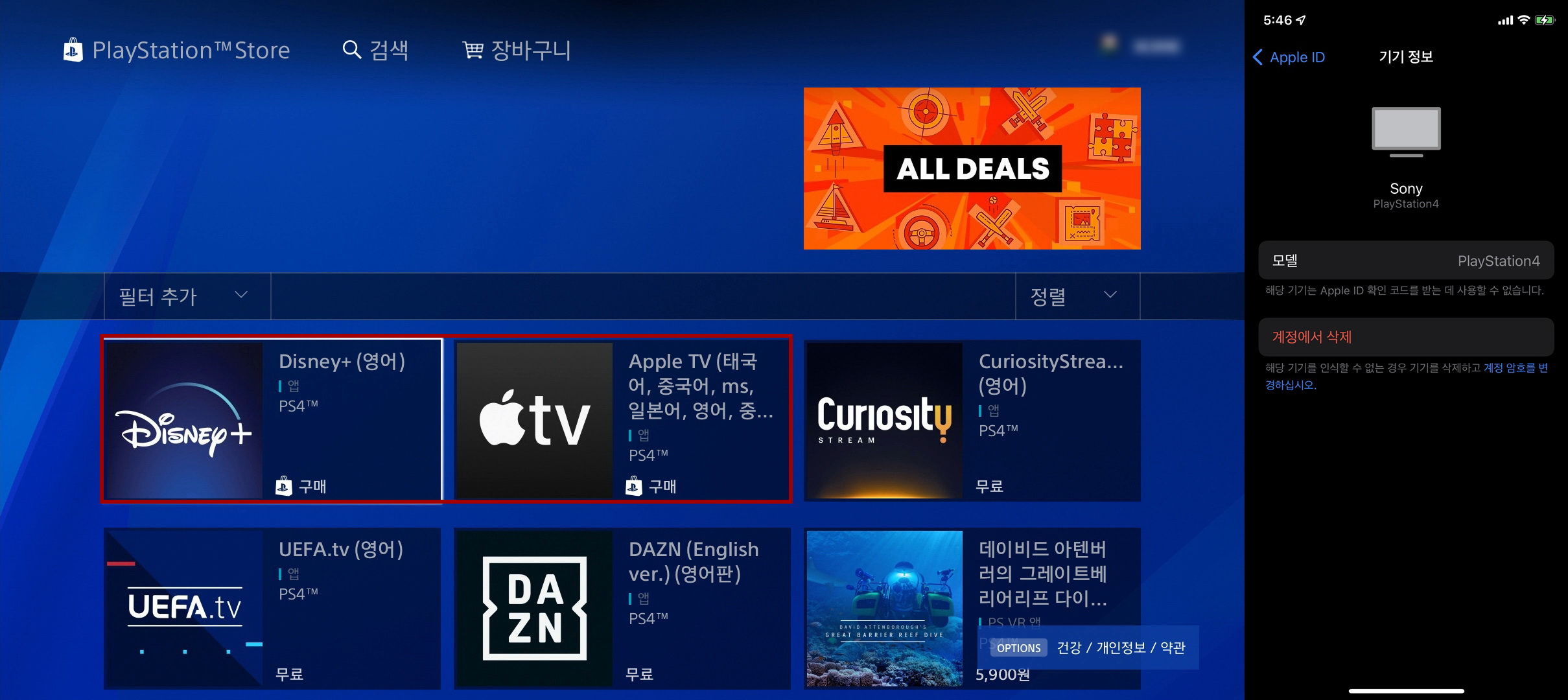 먼저 PlayStation Store에서 AppleTV와 Disney+ 어플을 다운로드하여서 설치하고,