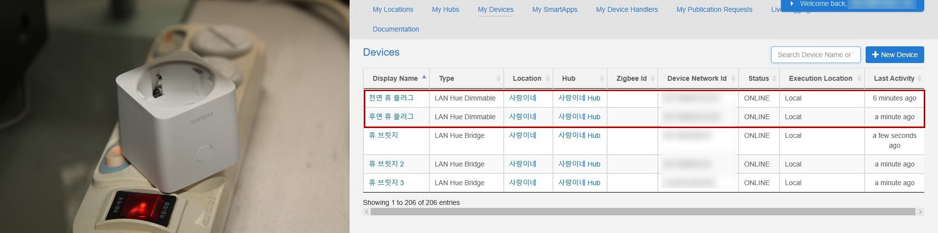 오늘은 필립스 휴 플러그 2개를 앞뒤 베란다에 설치하고, 휴 전구의 지그비(zll) 리피터로 활용하여 보았다.