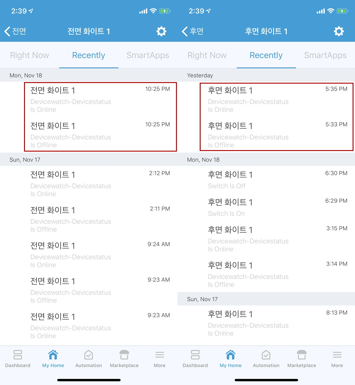예전에는 디바이스 헬스 체크시 잠깐씩 오프라인으로 빠지는 현상이 사라져서,