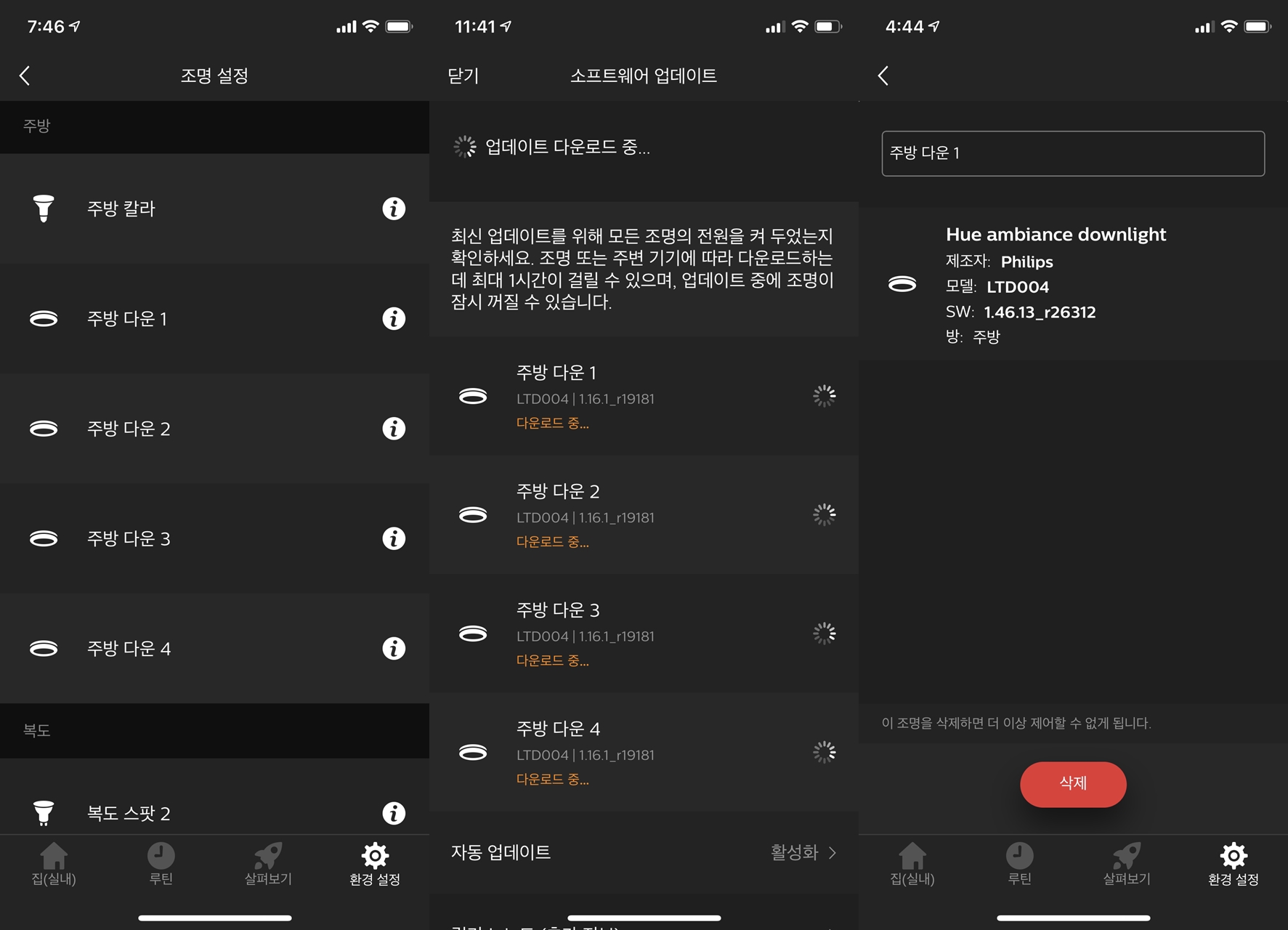 소프트웨어 업데이트를 통하여 전구의 펌웨어도 최신 버전으로 올리고,