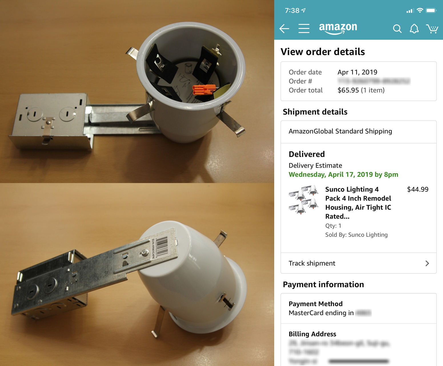 다운라이트를 고정시키는 하우징 1팩(4개)도 44.99달러에 구매하였는데,