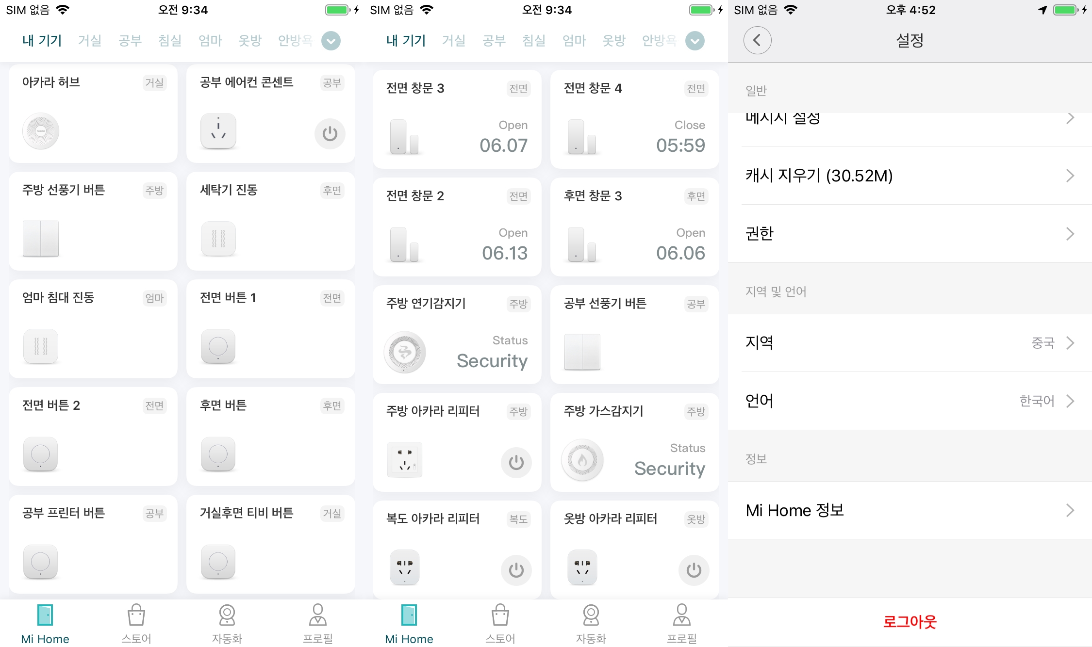 나는 아카라 허브에 연결된 다비이스들은 아카라 앱에서 관리하는 것을 더 즐겨하는데,